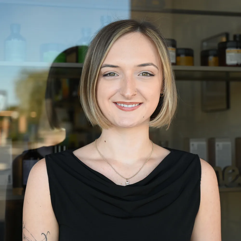 Zoe brings fresh energy and precision to every appointment. A graduate of the Aveda Institute in Avondale, she’s spent the past two years honing her craft and building a loyal clientele who appreciate her eye for detail and approachable style.